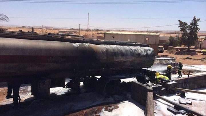 تلقت غرفه عمليات الدفاع المدني بمدينة بتبوك 10: 30 صباح اليوم الأحد الموافق 1435/12 /4 بلاغ عن حريق محطه وقود في مركز شقري يبعد عن تبوك 86 كيلو، تم انتقال 3 فرق و 6 صهاريج ماء عند الوصول تبين أن الحريق في صهريج بنزين 32 ألف لتر وصهريج ماء تمكنت الفرق من إطفاء الحريق وعزله عن المحطه وأوضح الناطق الإعلامي لمديرية منطقه تبوك العقيد ممدوح العنزي أن سبب الحريق خطأ من سائق الصهريج أثناء التفريغ ممن أداء إلى اشتعال الصهريج وصهريج ماء كان واقف بجانبه واشتعال الخزان الأرضي ولم تحدث أي إصابات أو وفايات ولله الحمد.