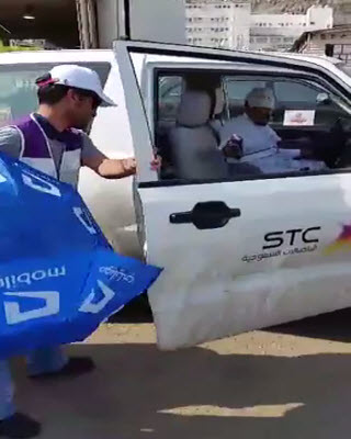 تناقل عدد من مرتادي مواقع التواصل الاجتماعي مقطعا مصورا لأحد موظفي شركة STC يقوم خلاله بجمع مظلات تحمل شعار شركة موبايلي من بعض الحجاج ويعوضهم بأخرى تحمل شعار شركته.