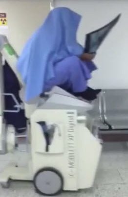 تناقل أصحاب مواقع التواصل الاجتماعي مقطعًا مرئيا لعدة ثوان يوضح شخصاً جالس أحد أجهزة مستشفى بالقصيم بكل استهتار، حاملاً صورة قراءة أشعة وشخصا آخر يقوم بتصويره بطريقة غير لا تليق بالمستشفى ولا الكادر الطبي الموجود فيه .