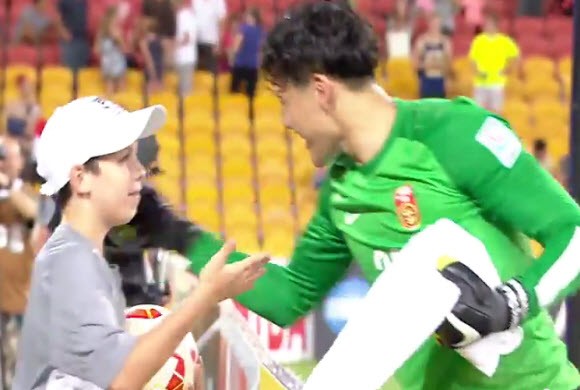 قام جامع الكرات طفل استرالي, حيث جاء للحارس الصيني من خلف الشبك. وأخبره بالزاوية التي سوف يضع نايف هزازي الكرة فيها. وفعلاً ذهب الحارس للزواية وصد الكرة. وفرح الولد .و عند نهاية المباراة ذهب الحارس للولد وشكره.
