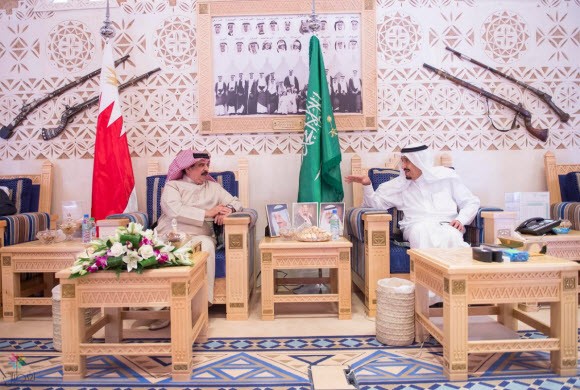 استقبل خادم الحرمين الشريفين الملك سلمان بن عبدالعزيز آل سعود – حفظه الله – في مزرعته بالدرعية اليوم أخاه جلالة الملك حمد بن عيسى آل خليفة ملك مملكة البحرين الشقيقة والوفد المرافق له.