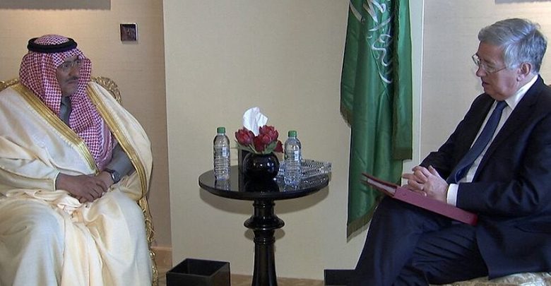 استقبل صاحب السمو الملكي الأمير محمد بن نايف بن عبدالعزيز ولي ولي العهد النائب الثاني لرئيس مجلس الوزراء وزير الداخلية بمقر إقامته بالعاصمة البريطانية لندن اليوم معالي وزير الدفاع البريطاني مايكل فولن يرافقه السكرتير الخاص بوزارة الدفاع لوك ديردن والمستشار الخاص لشؤون الشرق الأوسط بوزارة الدفاع الجنرال السير توم بيكيت والسفير البريطاني لدى المملكة سايمون توليس والملحق العسكري البريطاني لدى المملكة السيديز وايلد ومن وزارة الداخلية البريطانية روبرت ويليامز.