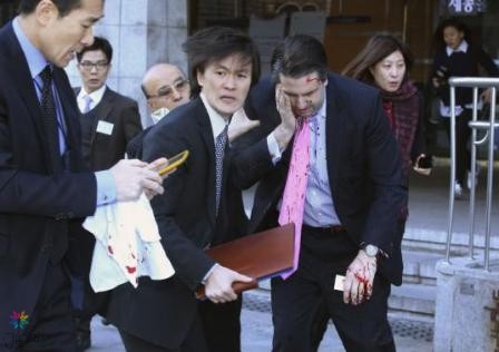 وكانت وسائل إعلام كورية جنوبية بثت مشاهد فيديو التقطت بعيد الهجوم ظهر فيها السفير وقد وضع يده اليمنى على وجهه النازف في حين بدت يده اليسرى مصابة بجرح ومضرجة بالدماء.