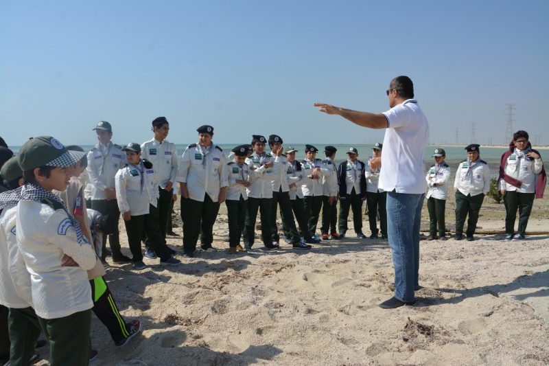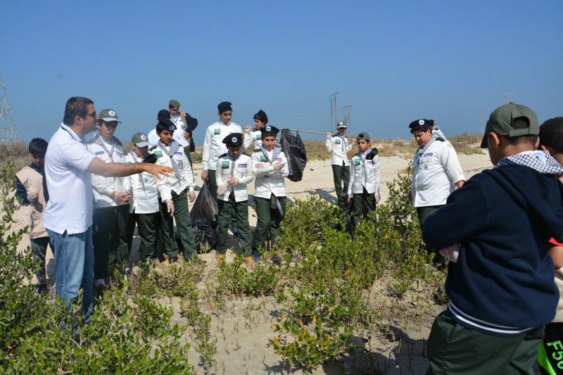 وكان في استقبال الكشافين المهندس : خالد الشيخ من إدارة حماية الحياة الفطرية والذي قدم شرح موجز عن أهمية الشجرة القرم ومواسم زراعتها وكيفية العناية بها , قام بعدها بتوزيع الكمامات والقفازات وأكياس النفايات على الكشافين للبدء في إزالة الشوائب والاعتناء بهذه النبتة الهامة. وقد تفاعل الكشافون مع هذه الحملة بشكل رائع انطلاقا من أهمية القيام بمثل هذه الأنشطة الفاعلة.