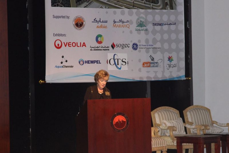 وتضمنت جلسات العمل استعراض شركة مرافق المياه والكهرباء ممثلة بنائب الرئيس المهندس خالد السبيعي التحديات التي تواجهها الشركة والإجراءات التي تتبعها للتصدي ومنع التآكل ونقل خبراتها لفائدة المنشآت الصناعية واستبيان الخطط الطموحة التي تتبناها الشركة في هذا المضمار. كما تحدثت الخبيرة والمستشارة العالمية الأمريكية السيدة الين بومان ممثلة الجمعية الأمريكية للحماية من التآكل عن التكاليف المرتفعة التي تتكبدها الشركات حول العالم والتي قدرت بأكثر من تريليوني دولار سنويا نتيجة التأكل وبينت أن هناك ضعف كبير لدي المسؤولين التنفيذيين بالشركات بعدم معرفة هذا الجانب بما يساهم بوضع سياسات تحد من التأكل وتخفض الهدر المالي.