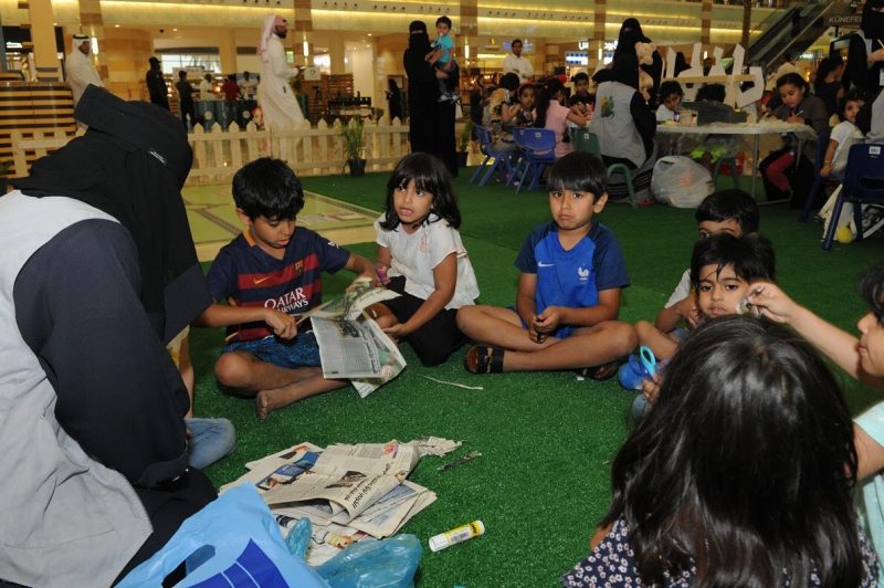 من جانبها تقول مشرفة ركن مدينة الطفل المتطوعة بفريق وطن متحد حنان العنزي “أننا نحاول بقدر الإمكان أن ننمي في الطفل ثقافة إعادة التدوير والتركيز على مهاراته الشخصية في تلوين الأكواب واظهارها بشكل جمالي بحيث تستخدم في اشياء اخرى. إضافة الى ركن جدار الالوان وذلك عبر الاستفادة من الورق وعدم اتلافه.