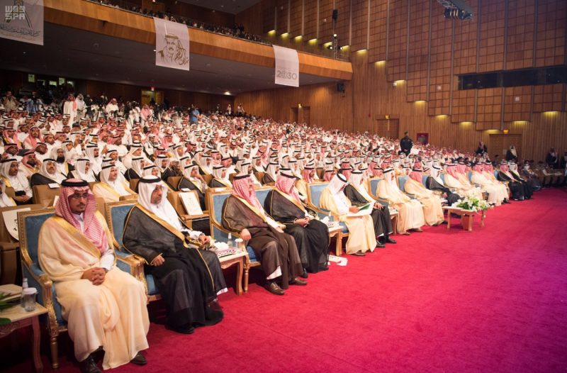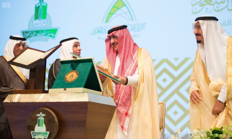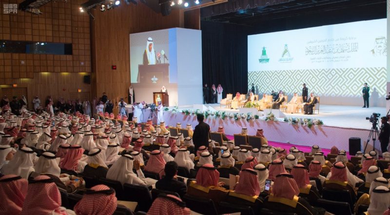 وعقب أن أخذ خادم الحرمين الشريفين – أيده الله – مكانه في المنصة الرئيسة بدئ الحفل المعد بهذه المناسبة بآيات من القرآن الكريم.