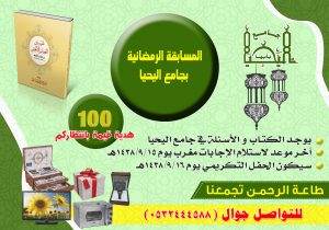 – المسابقة الرمضانية في كتاب العشر الأخير وهي مسابقة تقام للمرة الثالثه وقد شارك فيها العام الماضي ما يزيد على ( 800 أسرة ) . ولا زالت الجهود متتابعة في جامع اليحيا .