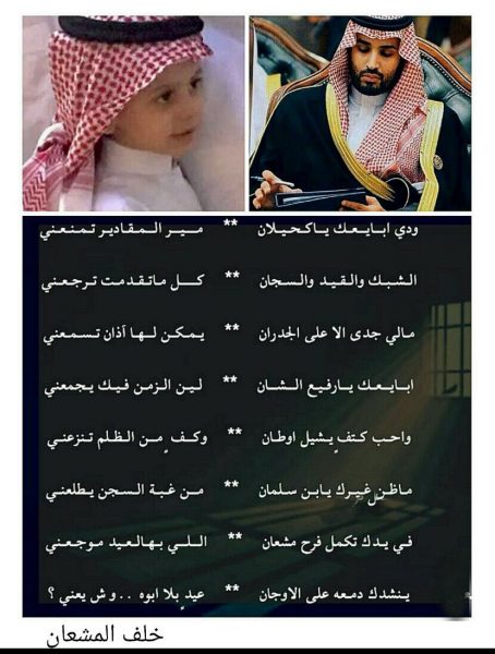 وكان الشاعر “المشعان” قد ناشدوا سمو ولي العهد، بإخراجه من السجن ليتمكن من العيد مع ابنائه بقصيدة أعلنها عبر حسابه.