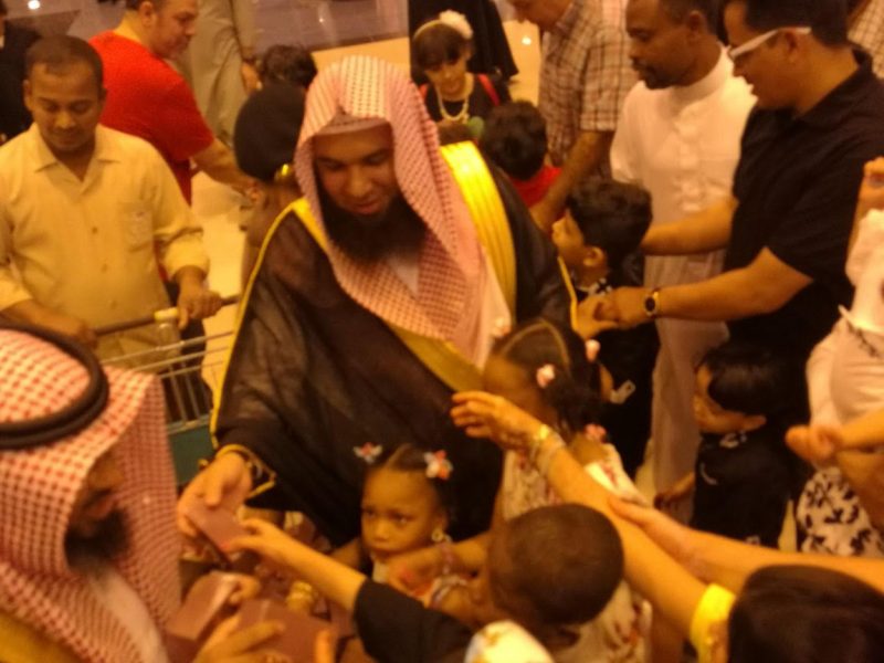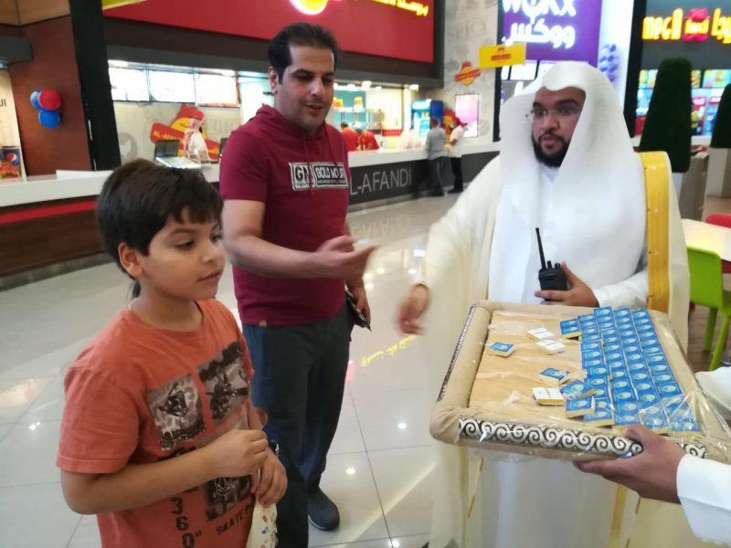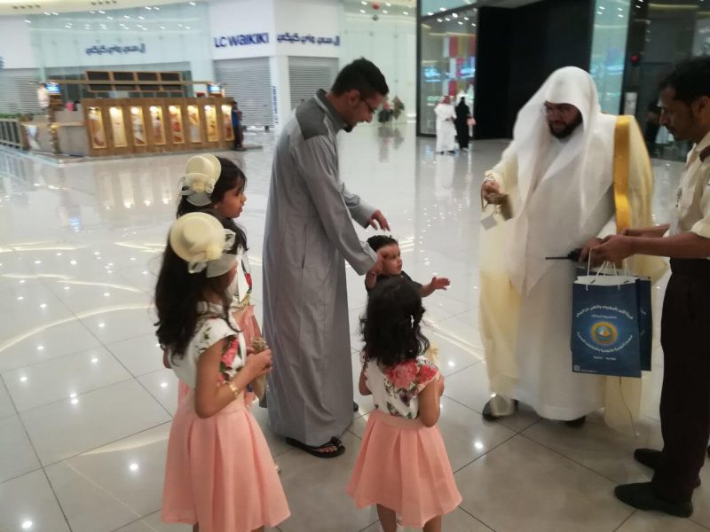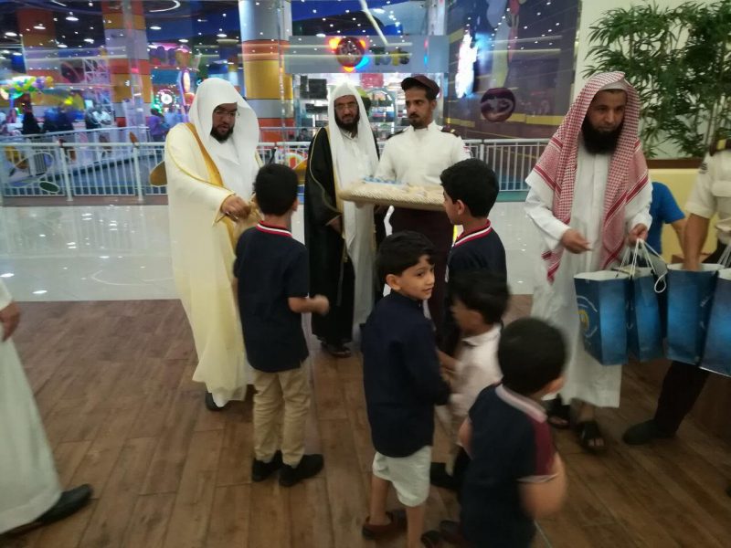 كما وزع أعضاء هيئة الأمر بالمعروف بمدينة الدمام والخبر الحلوى و الهدايا على المواطنين والمقيمين في الاسواق والاماكن العامة