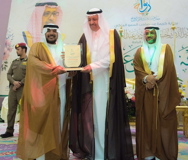 وفي ختام الحفل كرم سمو أمير منطقة الباحة الجهات المشاركة والمنظمة والداعمة للحفل ، فيما تسلم سموه هدية تذكارية بهذه المناسبة ، كما تم تسليم المقبلين على الزواج المعونة المالية البالغ قيمتها 2.700.000 ريال ، بحد أدني 7000 ريال لكل عريس .