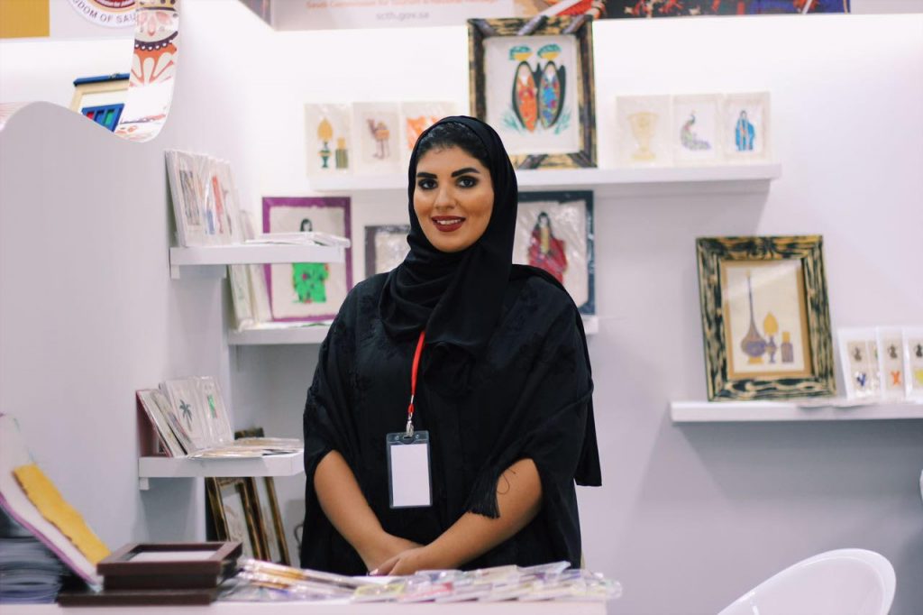 مشيرة إلى إن كل دورة مدتها شهر لعدد 15 متدربة بعدد ساعات لاتقل عن 60 ساعة عدا دورة الديكوباج 115 ساعة.  إضافة  إلى إن  القسم ينتج اعمال يدوية بأيدي نساء سعوديات مبدعات .