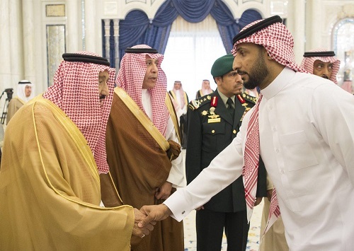 استقبل خادم الحرمين الشريفين الملك سلمان بن عبدالعزيز آل سعود – حفظه الله – في مكتبه بقصر السلام بجدة اليوم، معالي رئيس مجلس إدارة الهيئة العامة للرياضة الأستاذ تركي بن عبدالمحسن آل الشيخ يرافقه رئيس وأعضاء الاتحاد السعودي لكرة القدم، ولاعبو المنتخب السعودي الأول لكرة القدم بمناسبة التأهل لنهائيات كأس العالم 2018 في روسيا.