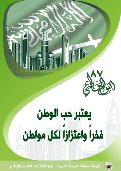 شرطة منطقة المدينة المنورة تشارك المواطنين فرحتهم باليوم الوطني
