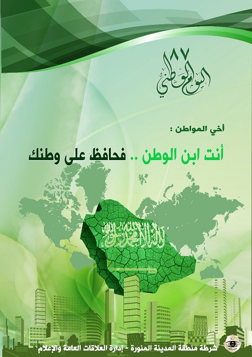 قامت إدارة العلاقات العامة والإعلام بشرطة منطقة المدينة المنورة في بادرة وطنية بمناسبة اليوم الوطني السابع والثمانون ، من خلال مشاركتها فرحة أبناء الوطن وذلك بتوزيع البروشرات التي تهدف إلى تنمية وتعزيز حب الوطن وقادته في قلوب أبناءه .