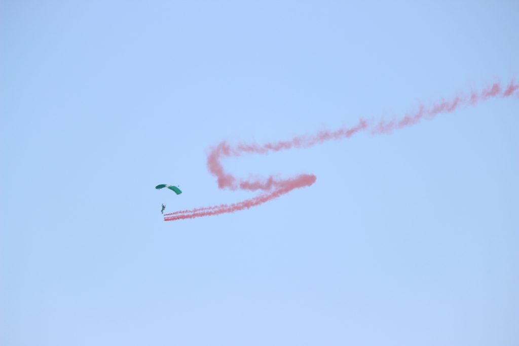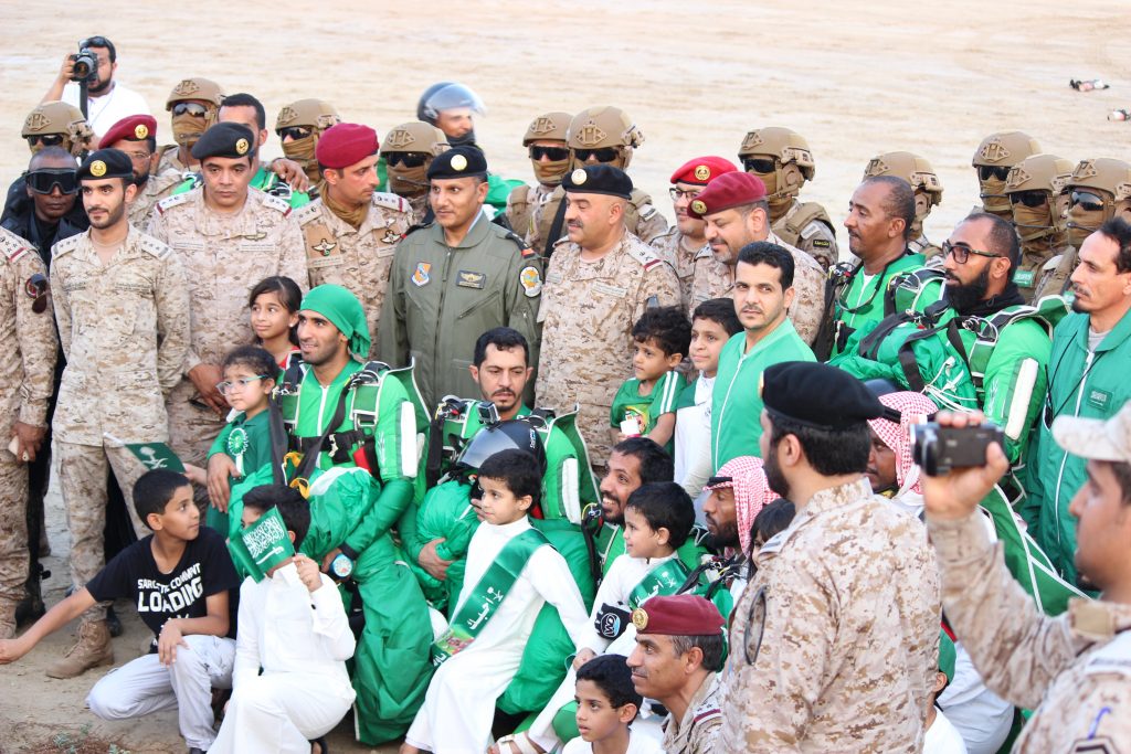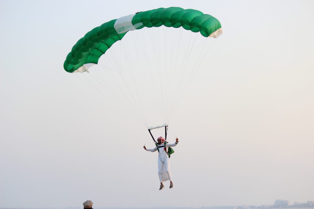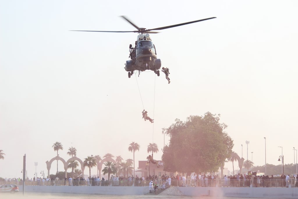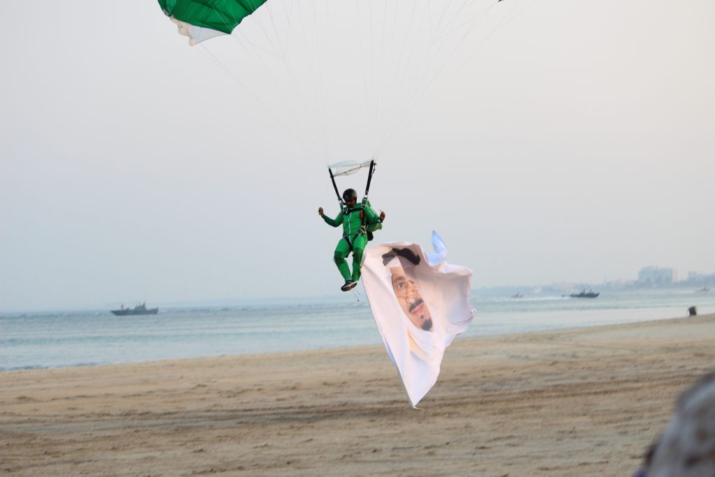 واختتمت العروض بالقفز المظلي الحر لمجموعة الأمن البحرية الخاصة الأولى بعملية القفز من الطائرة العمودية السوبر بوما من على ارتفاع 10000 قدم .