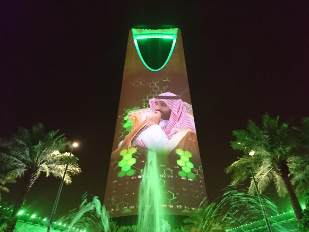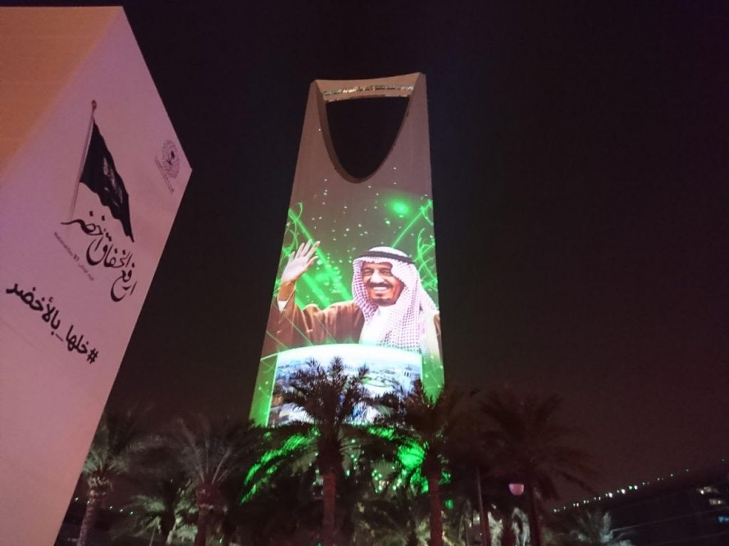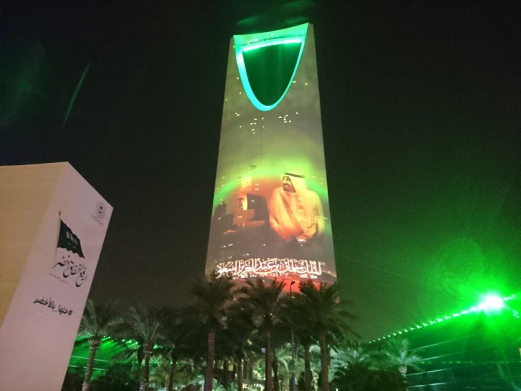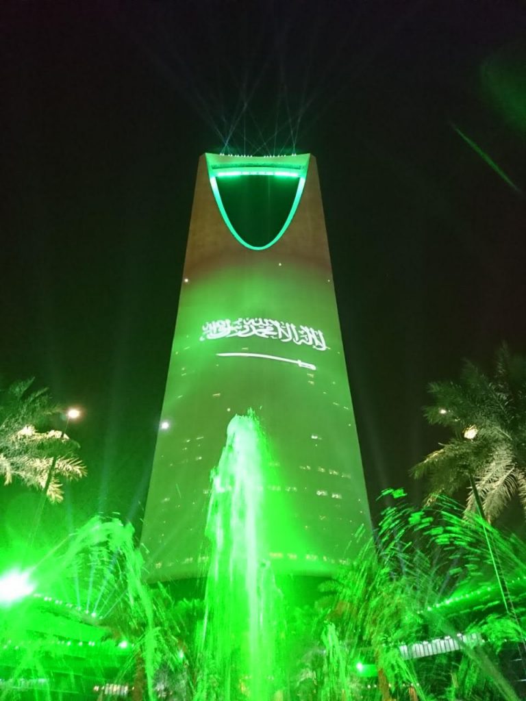 كما رصدت عدسة المصور المبدع “علي الدمجاني” مجموعة من الصور لبرج المملكة في مدينة الرياض وهو يعرض لوحات وطنية باللون الأخضر والتي جذبت أهالي وزوار مديمة الرياض.