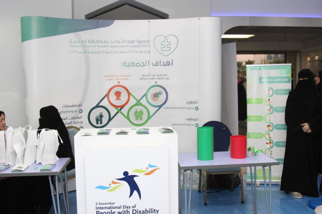 كما شاركت جمعية طيف للتوحد بمحافظة الجبيل في الأمسية بركن تعريفي عن أهداف الجمعية لأبناء الجبيل، وقد قدم مجموعة مراكز تجمل الأسنان بالأمسية خصومات لذوي الإعاقة .