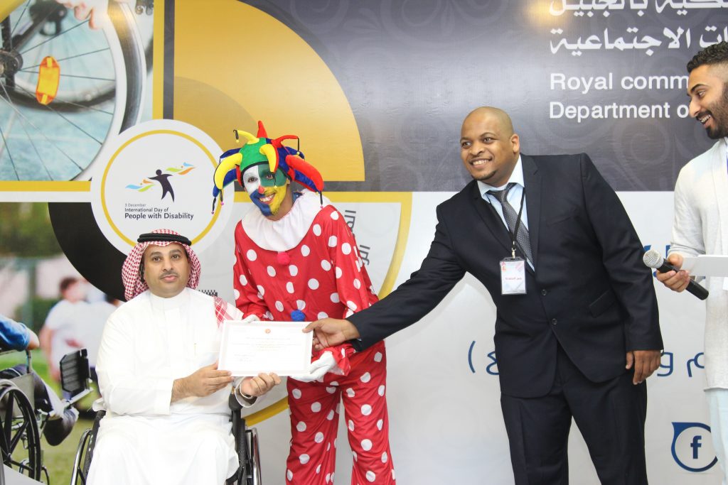بإشراف إدارة الخدمات الاجتماعية في الهيئة الملكية بالجبيل وبتنظيم من فريق نقطة تحول لتأهيل حديثي الإعاقة بالمنطقة الشرقية ومؤسسة المنطقة الفنية.