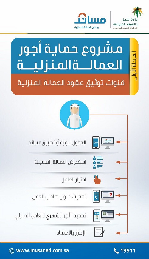 وأكد أباالخيل، أنه سيتم تقديم خدمة توثيق عقود التوظيف عبر بوابة “مساند” الإلكترونية على الرابطwww.musaned.com.sa، وتطبيق “مساند” على الهواتف الذكية.