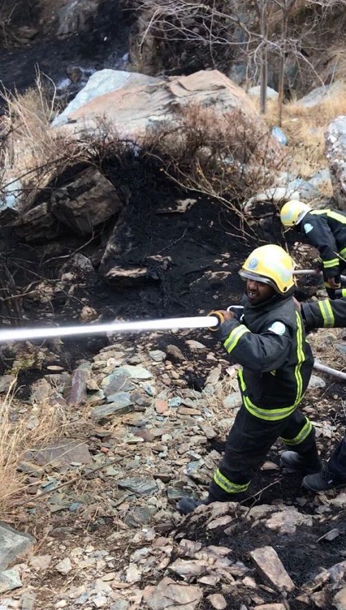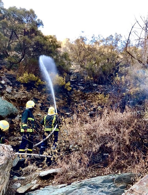 الدفاع المدني بمنطقة الباحة يسيطر على حريق بغابة خيره