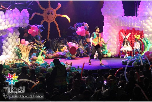 مشيرا إلى أن مسرحية “حكاية الأميرة” أقيمت بمشاركة الأطفال وتفاعلهم على المسرح من خلال 12 ألف بالونة، عبارة عن قلعة كبيرة رمادية اللون وقلعة بيضاء وشمس وحديقة وغيرها من المجسمات المثيرة كالفيل والأسماك والنعامة والدودة والتنين بطول 10 أمتار، وبمشاركة 10 عارضين أجانب من الفريق الفرنسي العالمي والذي يمتلك خبرة أكثر من 20 عاماً في هذا المجال حيث قدم عروضاً عالمية في فرنسا والصين والبرازيل والمكسيك وغيرها.