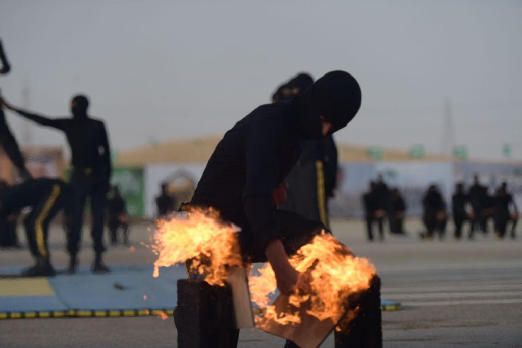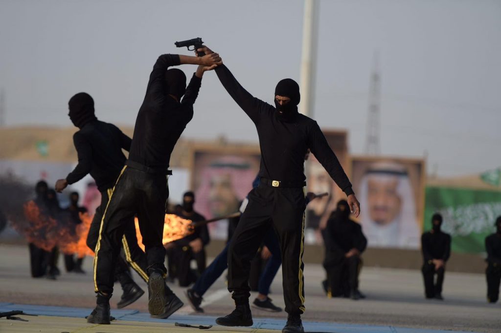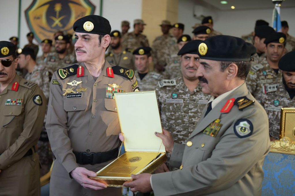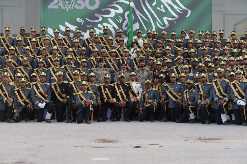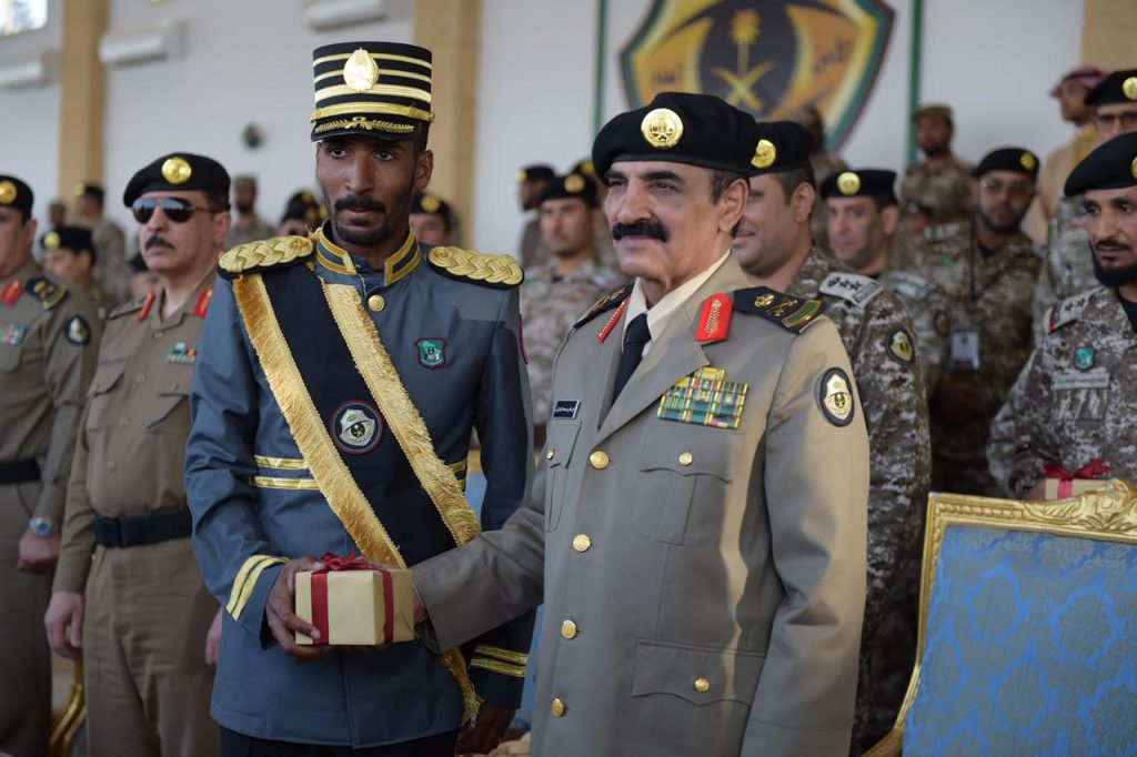 في مختلف تخصصات أمن السفارات وفور وصول سعادته إلى مقر الحفل كان في استقباله قائد القوات الخاصة للأمن الدبلوماسي العقيد معمر بن عبدالعزيز بن معمر وعدد من قيادات الأمن العام حيث بدأ الحفل بأي من الذكر الحكيم تلا ذلك كلمة لقائد القوات العقيد معمر بن عبدالعزيز المعمر أكد فيها على المراحل التي تسير فيها العملية التدريبية التي تجمع بين المهارة والتدريب والتأهيل بما يتناسب مع مهام رجل الامن الدبلوماسي الأمر الذي ساهم في النهوض بأدائهم عقب ذلك ألقيت كلمة الخريجين القاها أحد الطلاب وعبر خلالها عن سعادته وسعادة زملاءه بالتخرج مؤكداً على المضيء قدما لتطبيق ما تلقوه من تدريبات طوال التحاقهم بأكاديمية الأمن الدبلوماسي ثم قدم عرضا عسكريا لكافة الخريجين وعدد من التشكيلات العسكرية ثم أعلنت النتيجة العروض والتمارين التدريبية باستعراض مهارات الدفاع عن النفس أعقبه تدشين تمرين جبل الأمن ٤ ثم انتقل بعد ذلك إلى تقديم فرضية الرماية التي شهدت قبل ذلك افتتاح ميدان الرماية رقم ٢ التكتيكي كما قدم أثناء العروض فرضية الأفرع المشتركة لقوات الأمن الدبلوماسي.