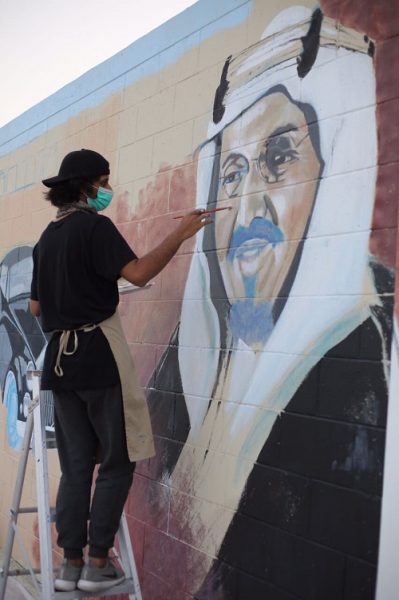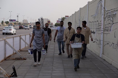 وأشارت المشرفة على الفريق الفني ميساء الرويشد إلى مشاركة ١٧ فنانا وفنانة من مختصي الفن التشكيلي بالمنطقة الشرقية بهذه المبادرة الوطنية بينهم طفل يبلغ عمره ١٢ عاما ورجل ستيني العمر أبدعوا جميعا في رسم الجدارية ، مبينة أن الجدارية تتضمن سيناريو وقصة تبدأ من تأسيس المملكة وحتى وقتنا الحالي حيث تستغرق فترة عمل الفنانين مايقارب اسبوعين لإنجازها بشكل النهائي .