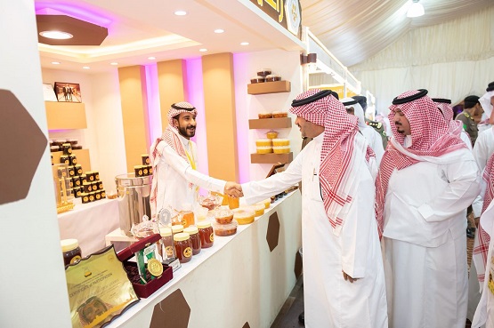 واستمع الدكتور اللويحق فور وصوله إلى شرح عن محتويات المعرض الذي يضم أكثر من 30 محلاً لبيع العسل ومنتجاته وأدوات صناعته، التي يشارك بها عارضين من داخل المملكة، إلى جانب جناح جمعية النحالين التعاونية المشتمل على مختبر التحليل ومنتجات العسل، والأدوات التي يستخدمونها في تربية النحل وإنتاج العسل.