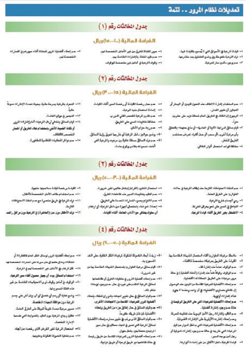 فيما يلي لزائح وأنظمة المرور بعد التعديل: