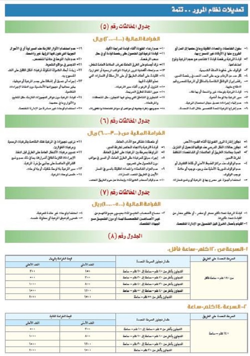 السرعة المحددة على الطريق مقدار تجاوز السرعة المحددة قيمة الغرامة بالريال
