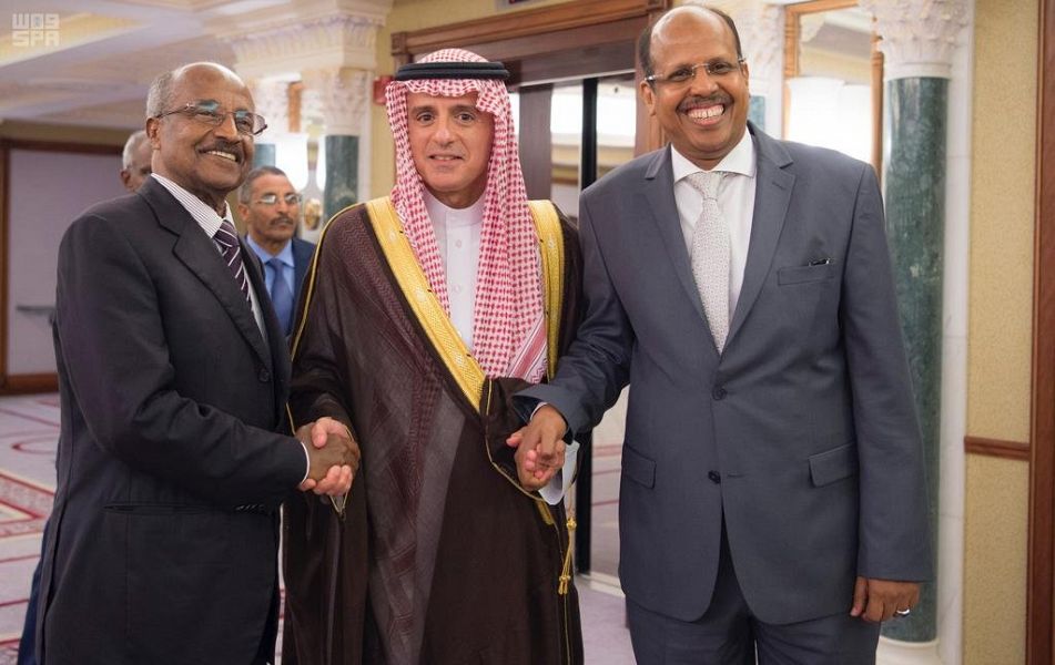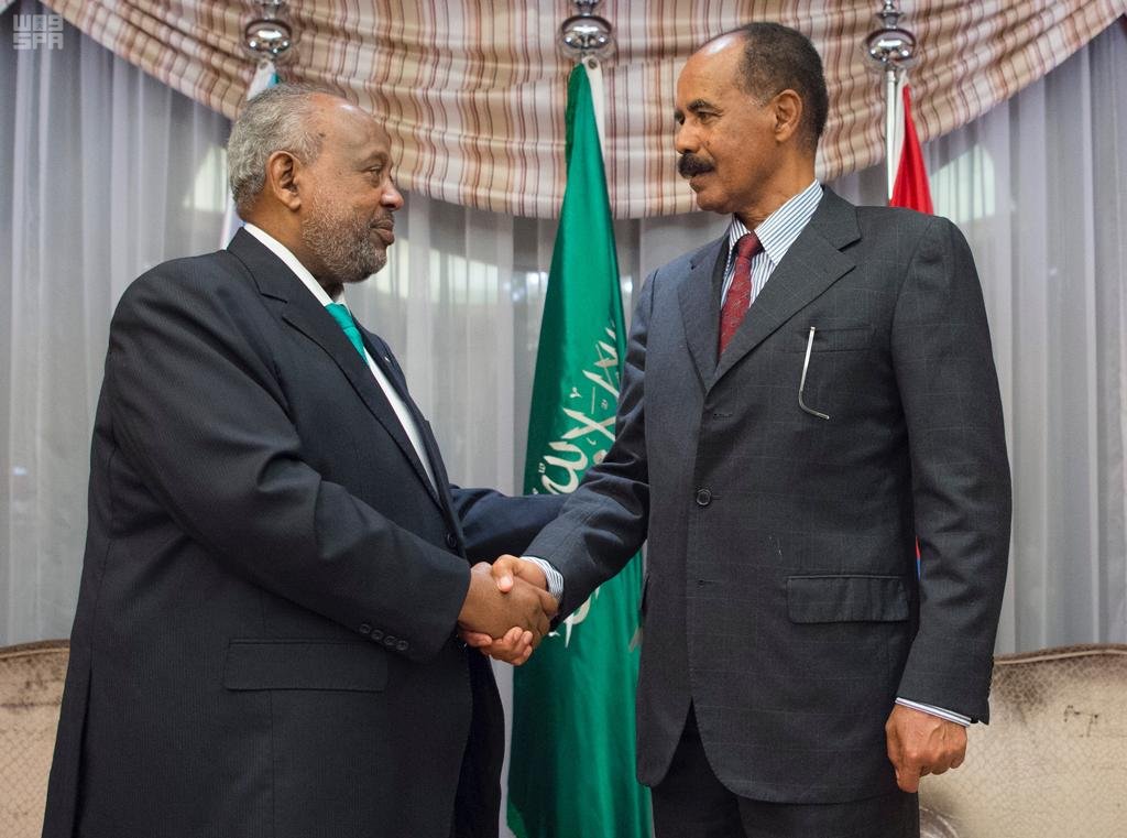 عبر معالي وزير الخارجية الأستاذ عادل الجبير في تصريح صحفي عقب اللقاء التاريخي الذي دعا إليه خادم الحرمين الشريفين الملك سلمان بن عبدالعزيز آل سعود، وجمع فخامة الرئيس إسماعيل عمر جيله رئيس جمهورية جيبوتي وفخامة الرئيس أسياس أفورقي رئيس دولة إريتريا، في مدينة جدة بعد 10 أعوام من القطيعة، عن التهنئة لقادة جيبوتي وإرتيريا على هذا الاجتماع التاريخي، لفتح صفحة جديدة في العلاقات بين البلدين الشقيقين.
