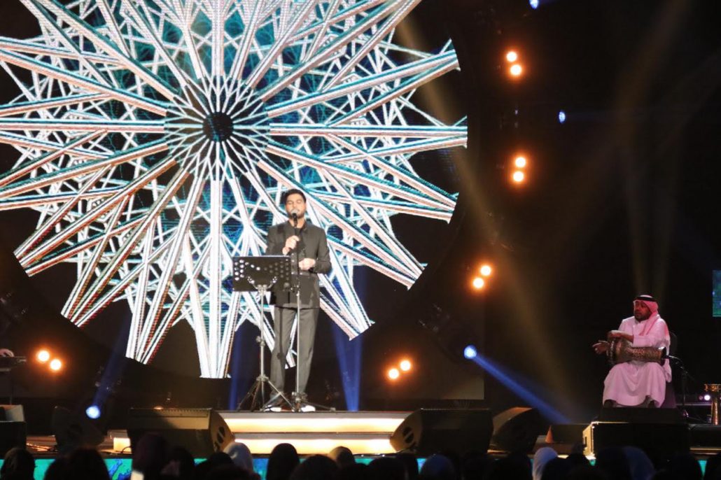 كما قدّم الماجد أغنيتين جديدتين بمناسبة اليوم الوطني للمملكة كان قد طرحها منذ يومين وهما “يا شاغل الناس” و”دارنا تاج”، ويقدمهما لأول مرة على خشبة المسرح من خلال الحفل الذي استمر حتى الساعات الأخيرة من الليل.
