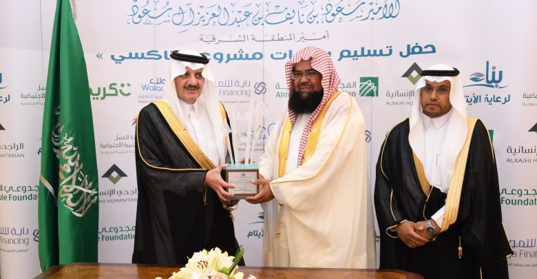 دشن صاحب السمو الملكي الأمير سعود بن نايف بن عبدالعزيز أمير المنطقة الشرقية بديوان الإمارة مشروع ( تاكسي ) والذي نفذته جمعية بناء لرعاية الأيتام بالمنطقة الشرقية وأشاد سموه الكريم بفكرة المشروع والتي سيكون لها اثر إيجابي على اليتيم وأسرته كما أكد سموه على الأيتام بضرورة التقيد بأنظمة المرور والسرعات النظامية عند استلامهم للسيارات .
