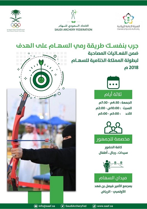 وفي نفس السياق تبدأ غداً “الجمعة” الفعاليات المصاحبة للبطولة بالتعاون مع الاتحاد السعودي للرياضة المجتمعية والتي ستتيح للجماهير التعلم على استعمال القوس و رمي السهام بجانب خوض التجربة في الميدان .
