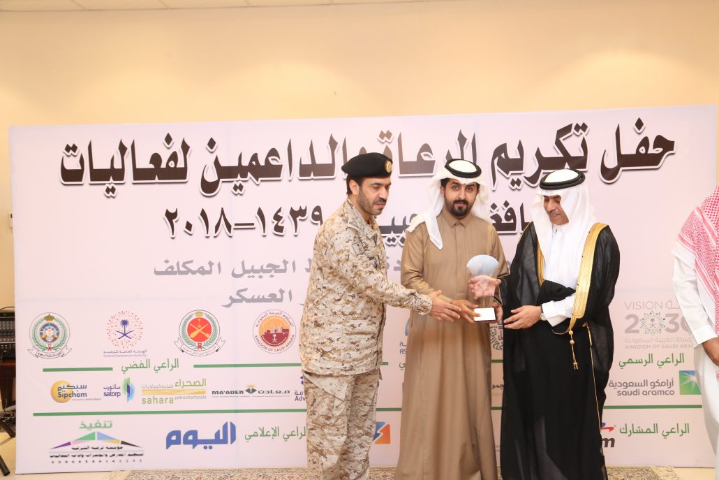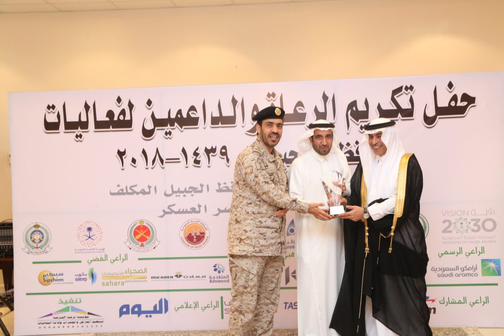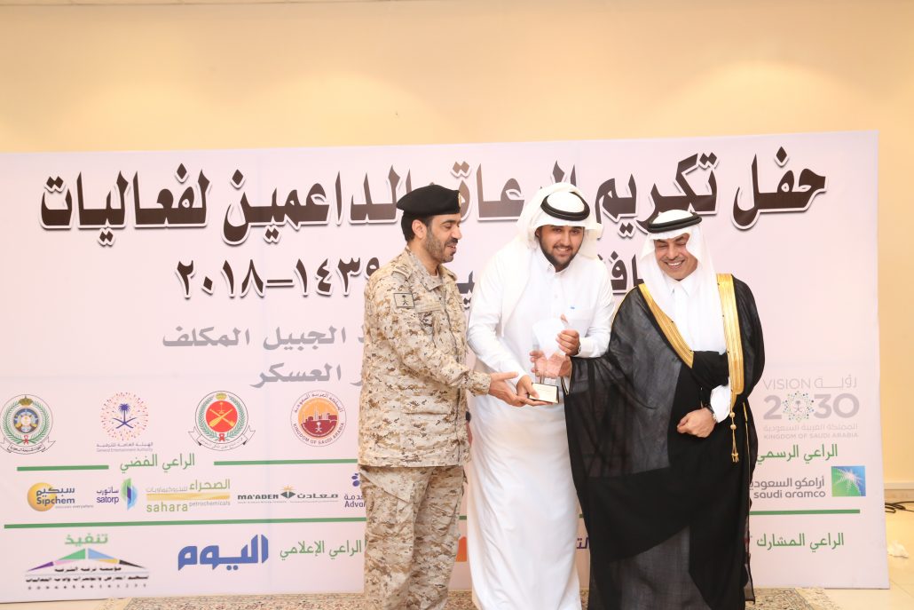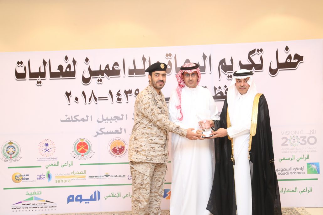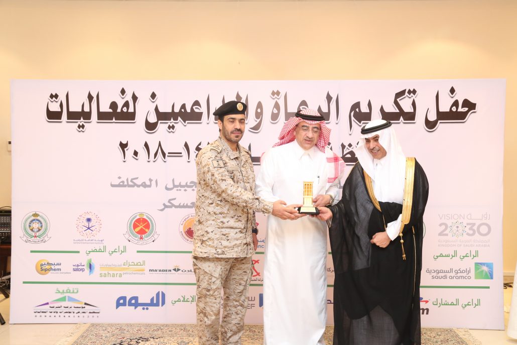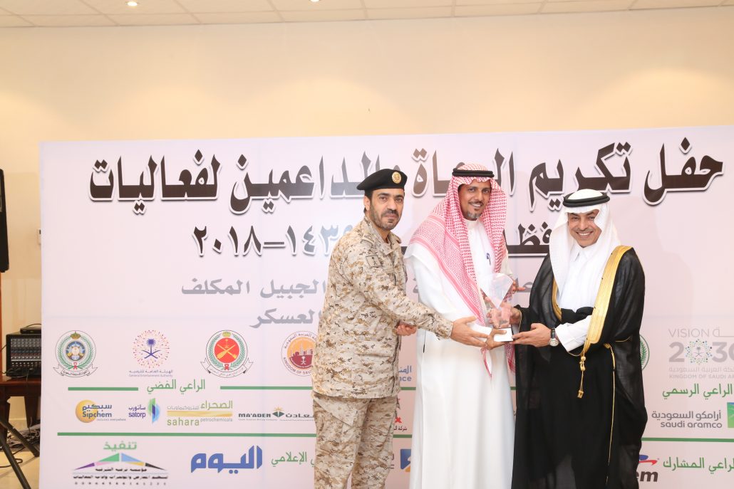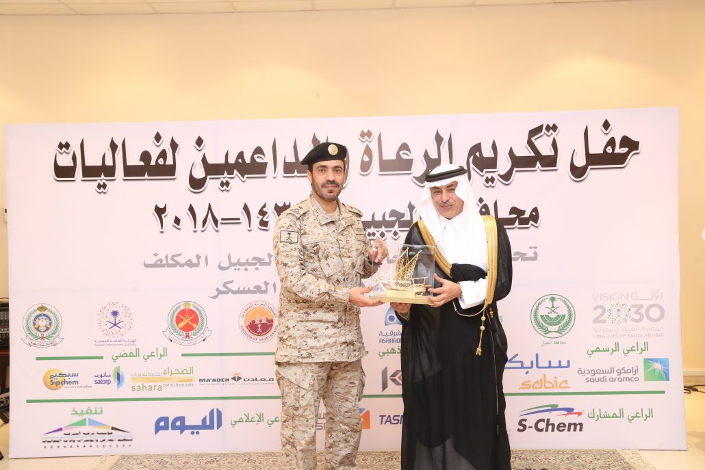 تحت رعاية سعادة محافظ الجبيل الاستاذ عبدالله بن ناصر العسكر أقامت لجنة المناسبات العامة حفل تكريم للقطاعات الأمنية والحكومية والشركات الراعية لفعاليات اللجنة للعام ١٤٣٩ -٢٠١٨ وذلك في مقر محافظة الجبيل بحضور قائد قاعدة الملك عبدالعزيز البحرية اللواء الطيار الركن صالح الغامدي وعدد من قادة القطاعات العسكرية ومدراء دوائر الحكومية ورؤساء الشركات في المحافظة .