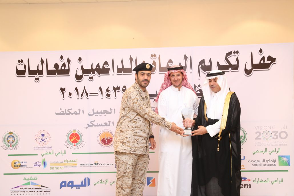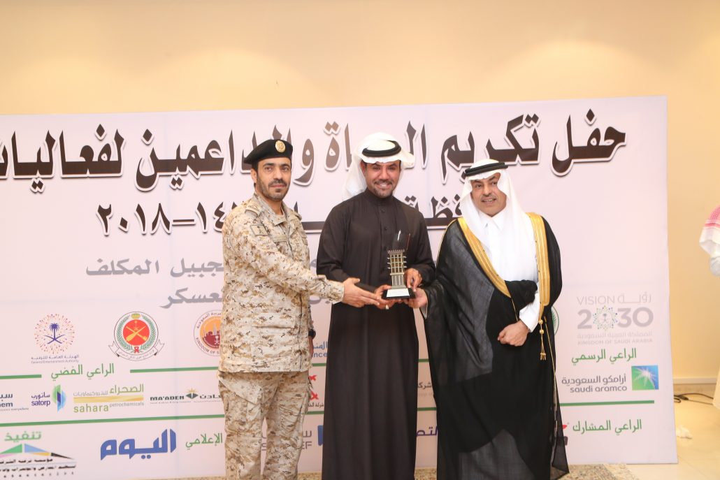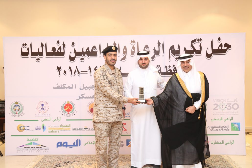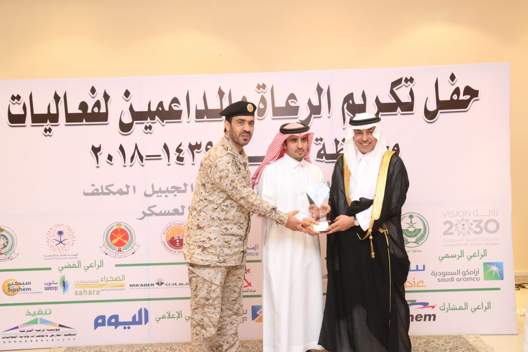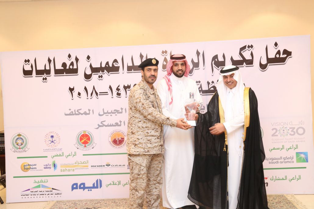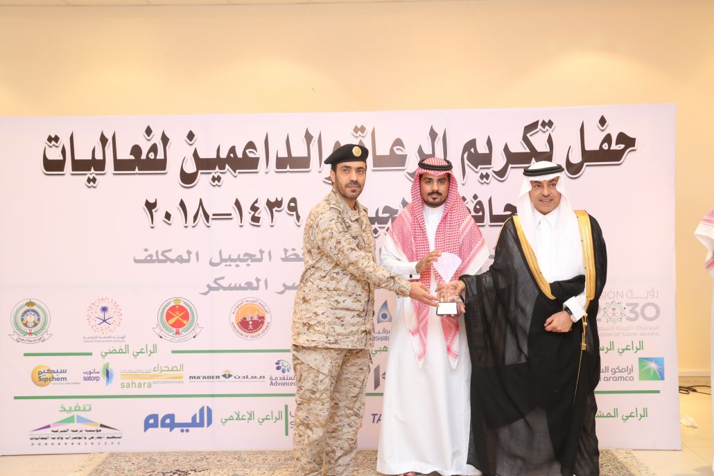 تحت رعاية سعادة محافظ الجبيل الاستاذ عبدالله بن ناصر العسكر أقامت لجنة المناسبات العامة حفل تكريم للقطاعات الأمنية والحكومية والشركات الراعية لفعاليات اللجنة للعام ١٤٣٩ -٢٠١٨ وذلك في مقر محافظة الجبيل بحضور قائد قاعدة الملك عبدالعزيز البحرية اللواء الطيار الركن صالح الغامدي وعدد من قادة القطاعات العسكرية ومدراء دوائر الحكومية ورؤساء الشركات في المحافظة .