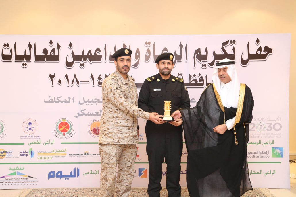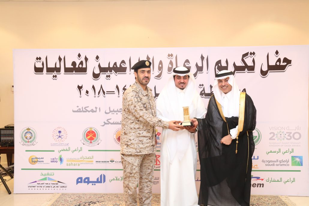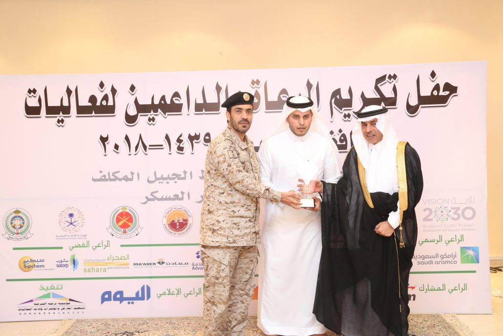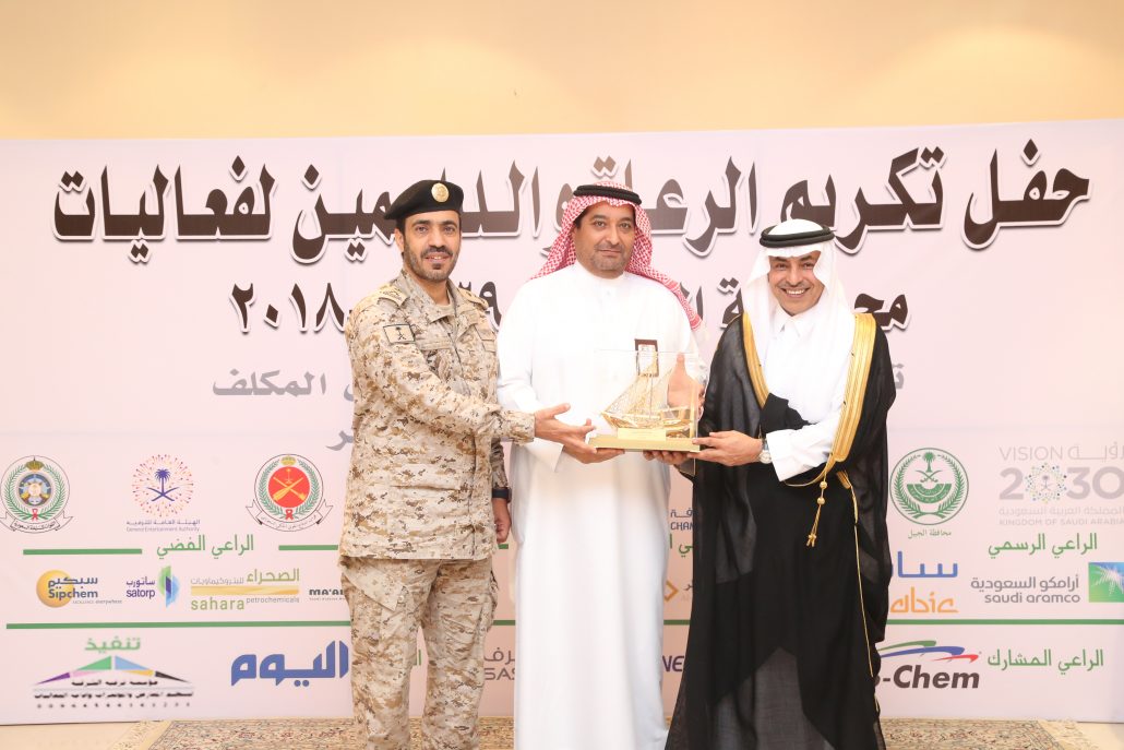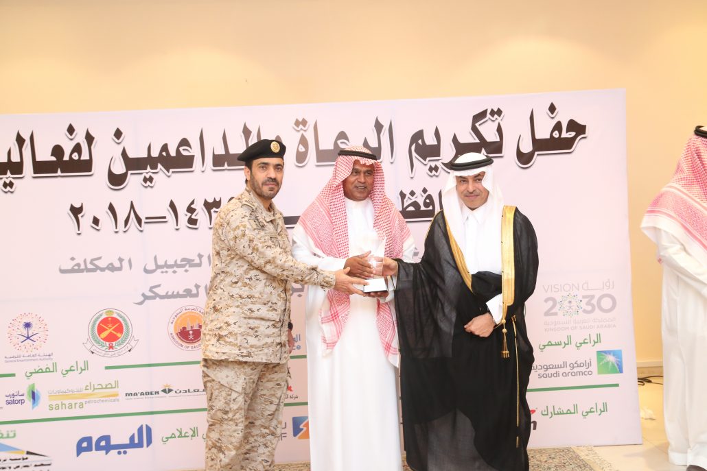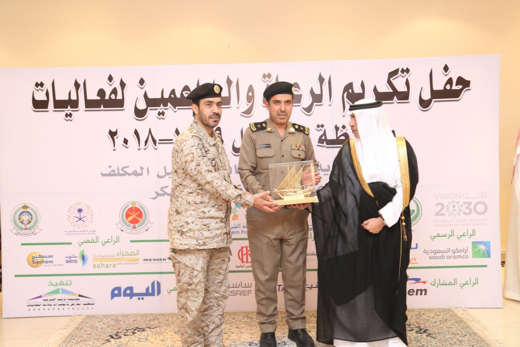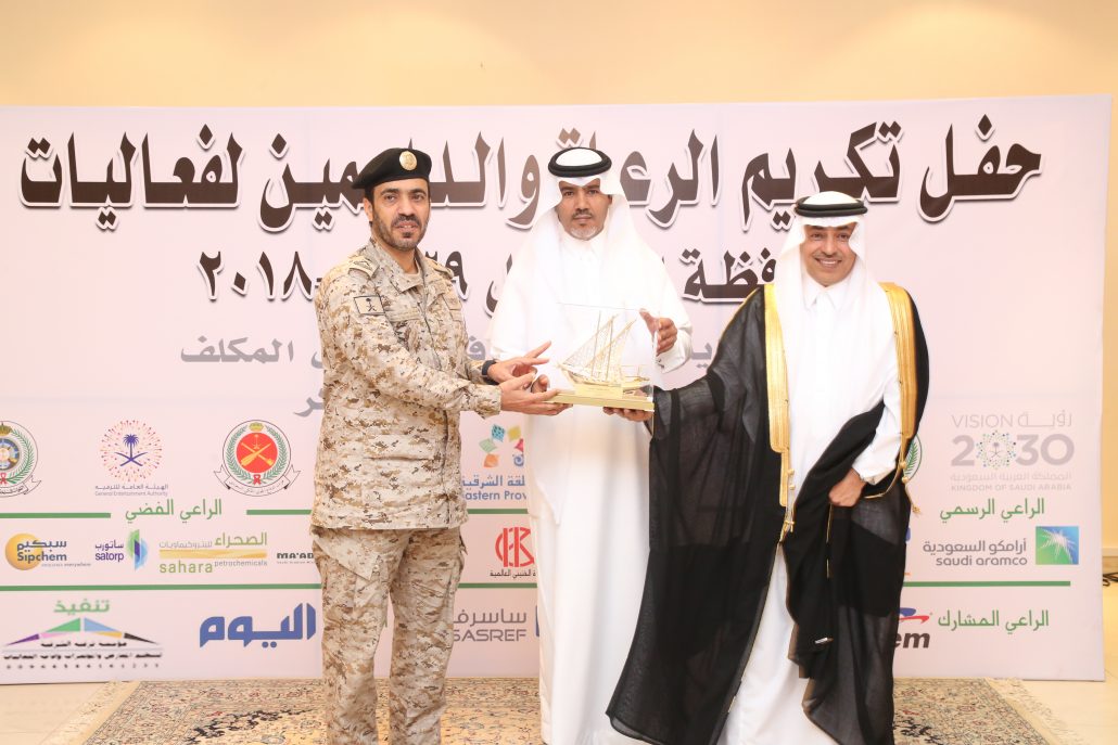 تحت رعاية سعادة محافظ الجبيل الاستاذ عبدالله بن ناصر العسكر أقامت لجنة المناسبات العامة حفل تكريم للقطاعات الأمنية والحكومية والشركات الراعية لفعاليات اللجنة للعام ١٤٣٩ -٢٠١٨ وذلك في مقر محافظة الجبيل بحضور قائد قاعدة الملك عبدالعزيز البحرية اللواء الطيار الركن صالح الغامدي وعدد من قادة القطاعات العسكرية ومدراء دوائر الحكومية ورؤساء الشركات في المحافظة .