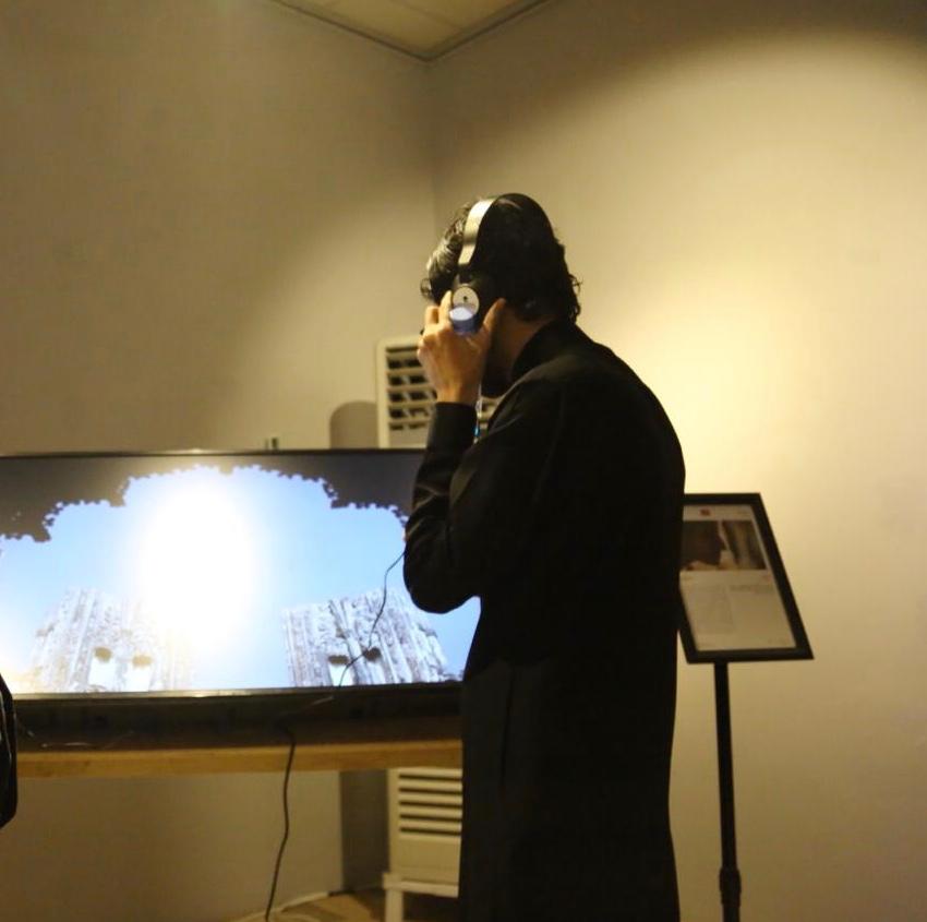كما استعرض الفنان عمل”حاجز افتراضي” وهو عمل تركيبي يرافقه عمل فيديو كان المعرض عن” الأشياء التي لاتلتقي” يحكي عن العلاقات “البشرية” التى تحيط بها الحواجز من عدة أماكن وهوعمل تفاعلي تشاطر الجمهور جزءا منه.