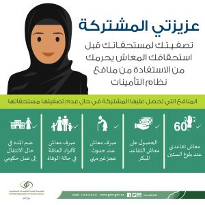 أكدت المؤسسة العامة للتأمينات الإجتماعية أن تصفية المشتركة لمستحقاتها قبل استحقاق المعاش يحرمها من منافع عديدة في نظام التأمينات .