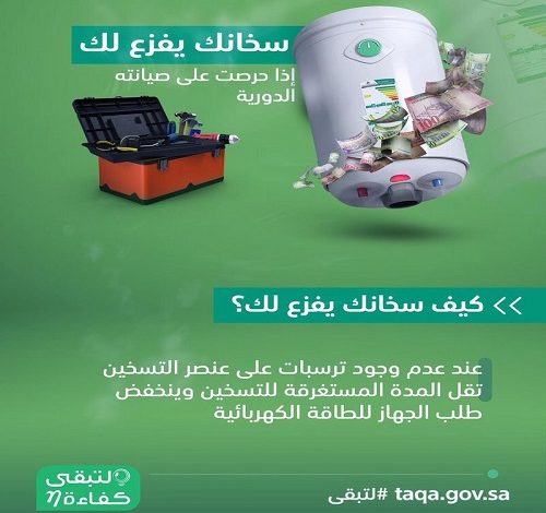 وفي رسائله التوعوية، أوضح المركز السعودي لكفاءة الطاقة “كفاءة”، أهمية إزالة الترسبات من عنصر التسخين؛ لأنها تسهم في تقليل المدة المستغرقة للتسخين، وانخفاض طلب الجهاز للطاقة الكهربائية.