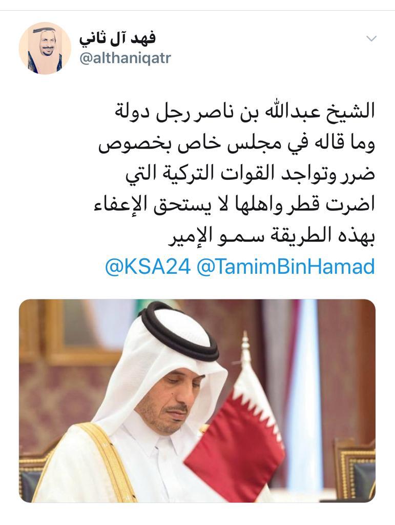 وأضافت المصادر أن رئيس الوزراء القطري الشيخ عبد الله بن ناصر قال في مجلس خاص بعزاء والدته ” أخاف نندم على جيّة الأتراك ولا يطلعون بعدين” ، وهي الجملة التي كانت سبباً في إقالته من منصبه.