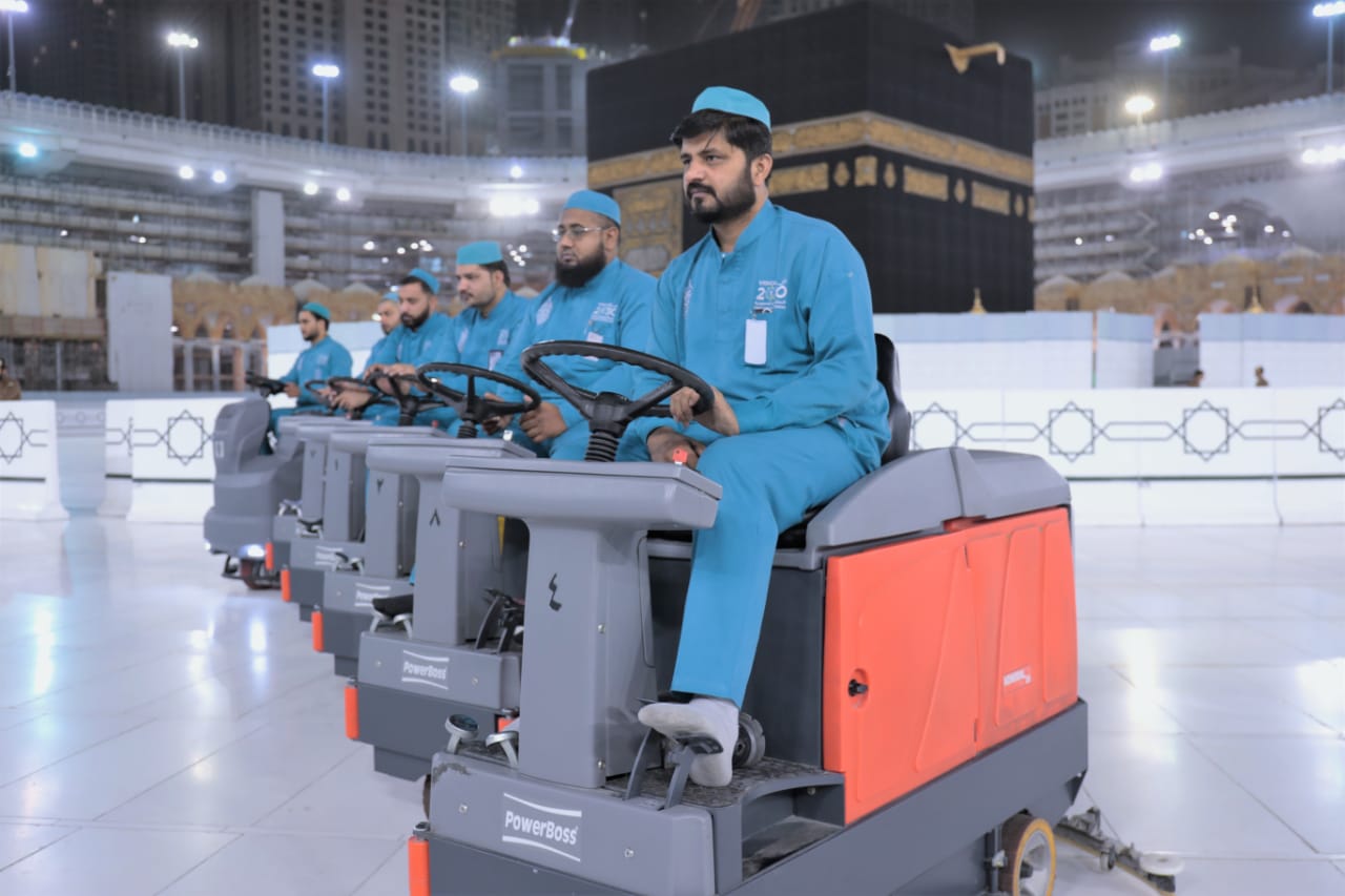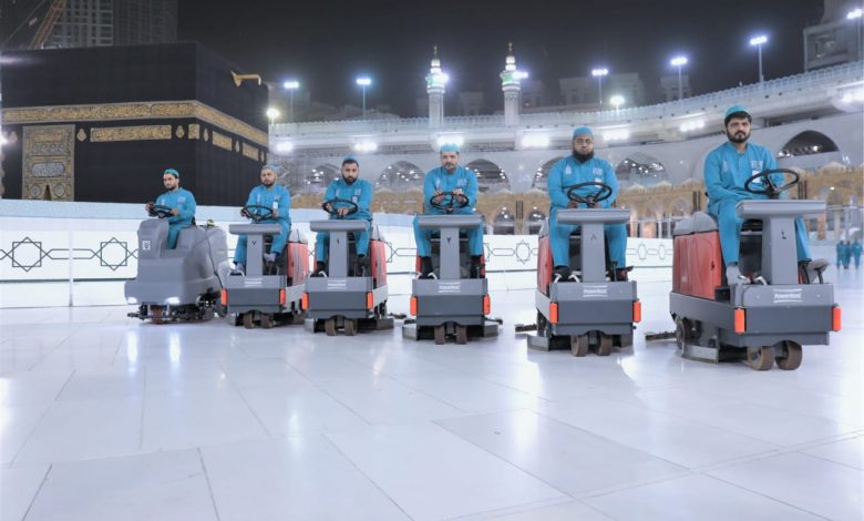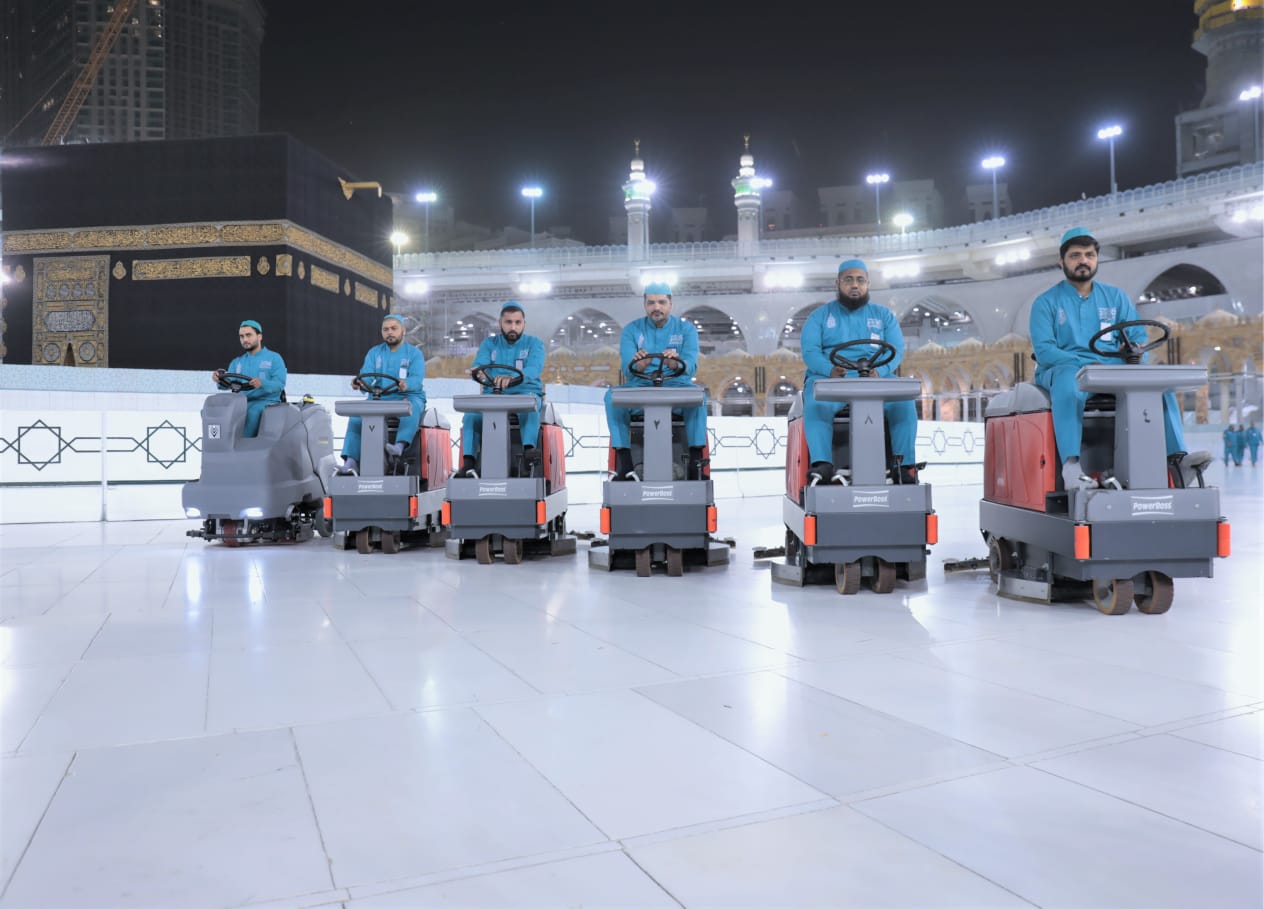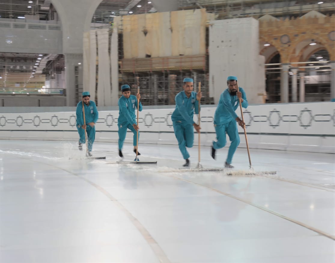 غسل صحن المطاف وتعقيمه ( 3 ) مرات من بعد صلاة العشاء إلى الفجر