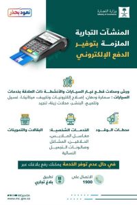 أوضحت وزارة التجارة، المنشآت التجارية المُلزمة بتوفير الدفع الإلكتروني للمُستهلكين والعملاء.