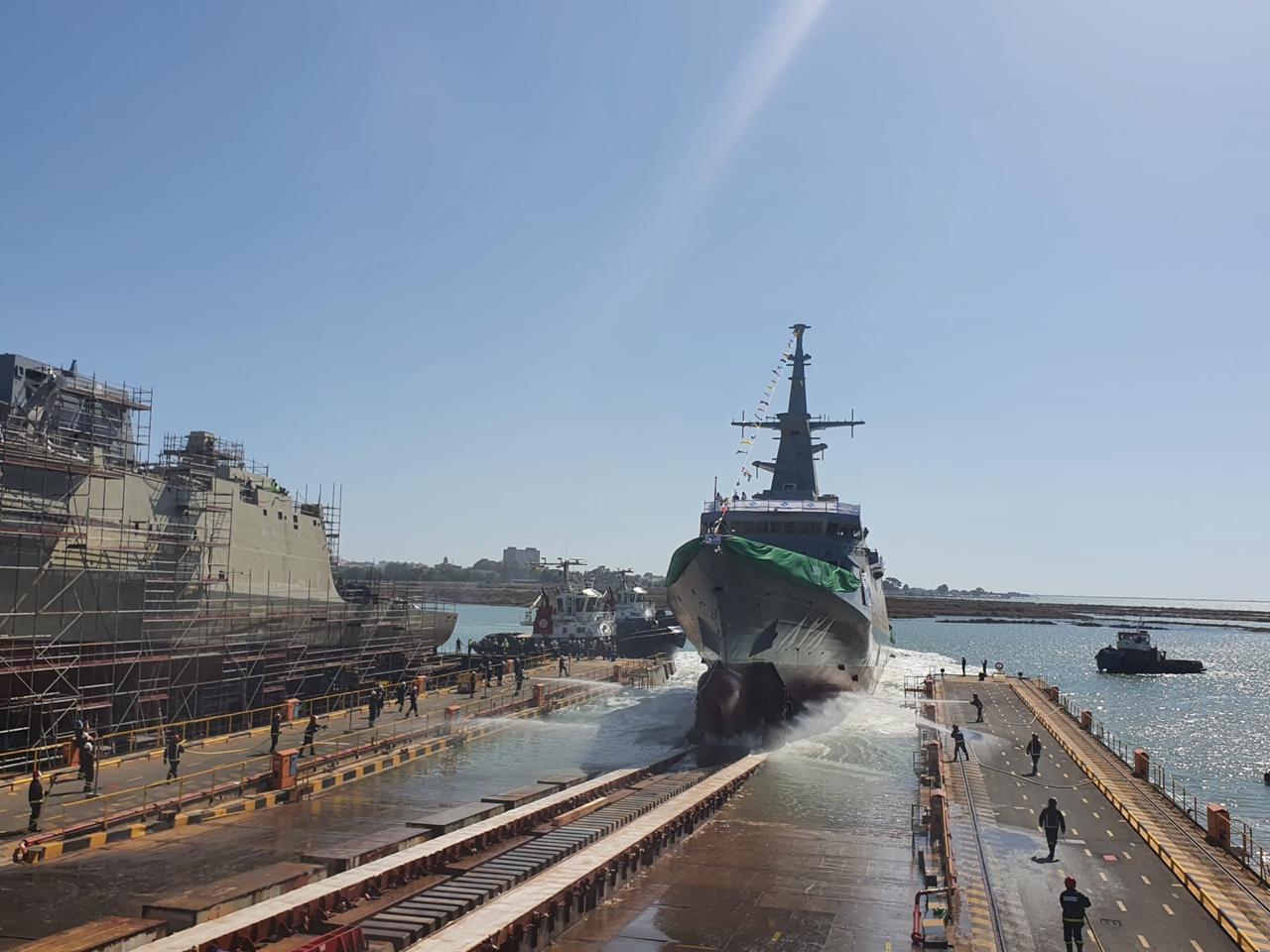 بالصور ..قائد القوات البحرية يعُوم أول كورفيت من مشروع السروات