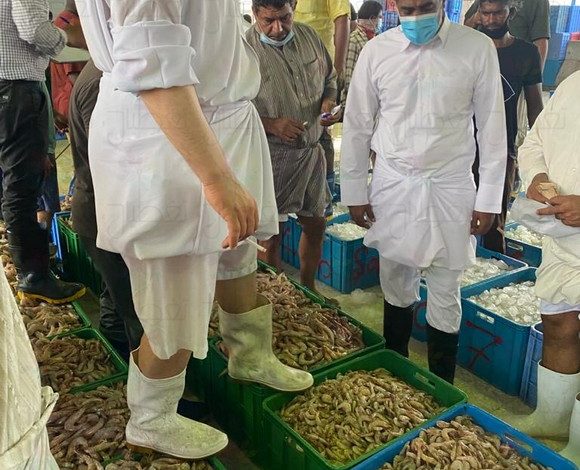 • التعامل مع السمك والربيان في الحراج بالأقدام.