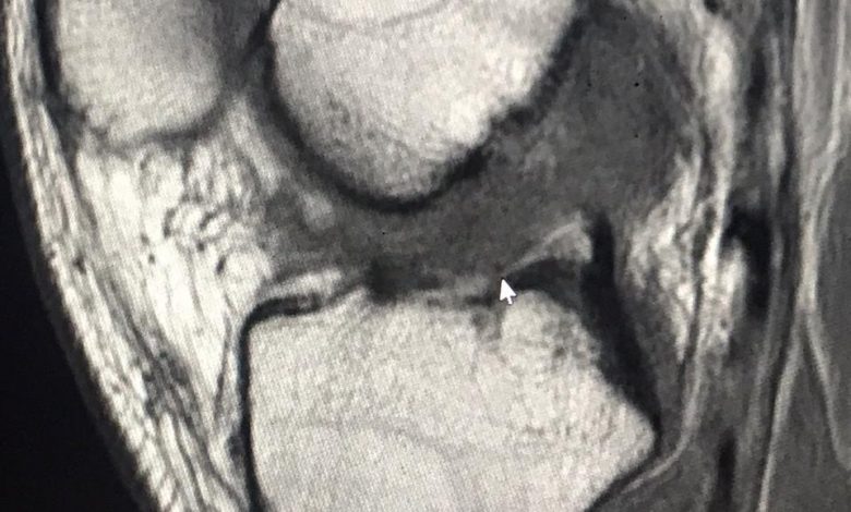و إصلاح الغضروف الهلالي للركبة عن طريق المنظار بثلاث فتحات صغيرة مما أدى إلى عودته إلى الوضع الطبيعي .