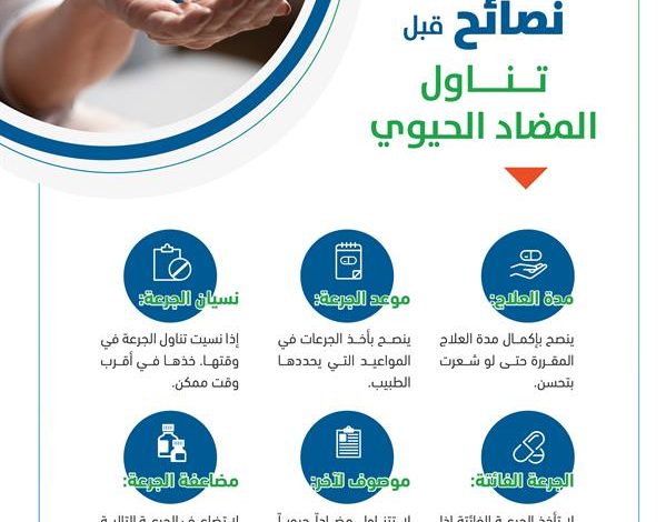 وجهت الهيئة العامة للغذاء والدواء، عدة نصائح يجب على المريض اتباعها عند أخذ المضاد الحيوي.