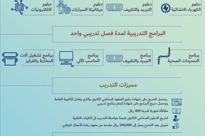 ودعا المعهد الراغبين ممن تنطبق عليهم الشروط التقدم عبر بوابة القبول الموحد بموقع المؤسسة العامة للتدريب التقني والمهني من خلال الرابط التالي: