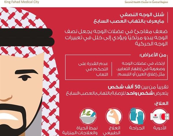 أوضحت مدينة الملك فهد الطبية أعراض الإصابة بشلل الوجه النصفي أو ما يعرف بـ”التهاب العصب السابع”، وهو عبارة عن ضعف مفاجئ في عضلات الوجه.